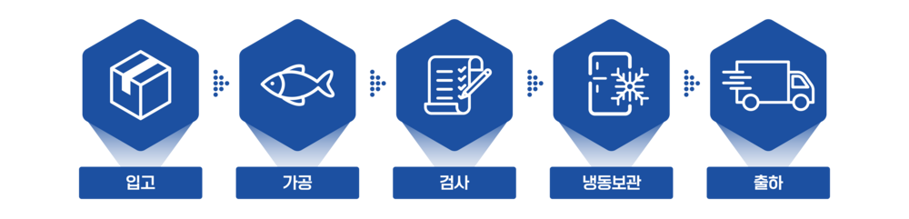 입고 → 가공 → 검사 → 냉동보관 → 출하까지